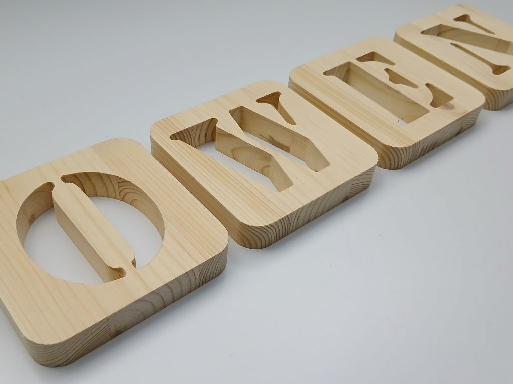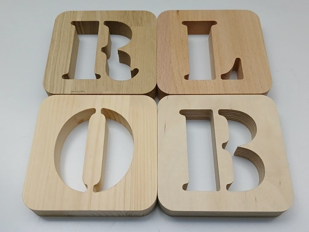 Blokletter, hoogte S (10 x 10 cm), gemaakt van 18mm dik hout.